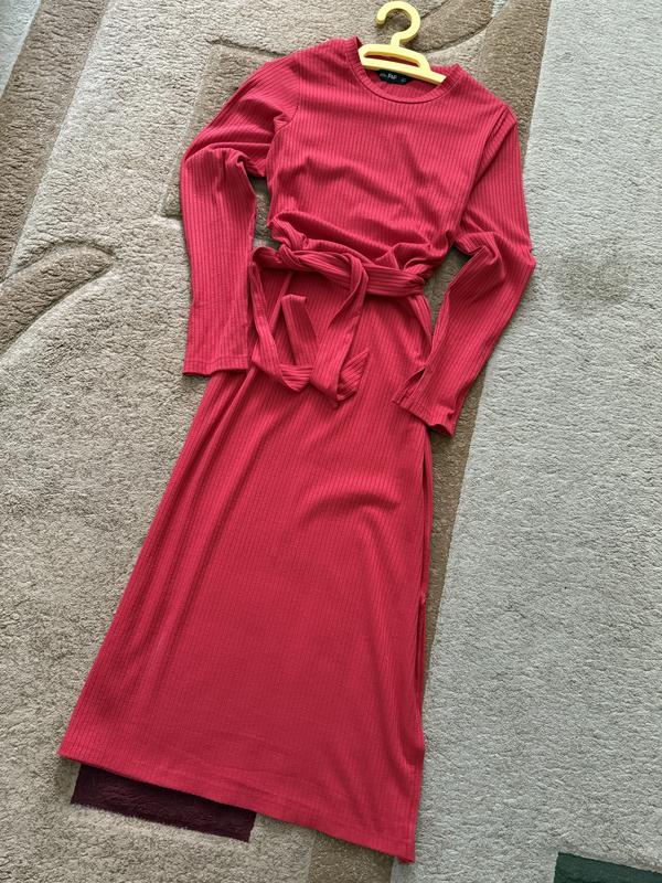 Сукня в рубчик з розрізом на рукавчиках і ніжці. Розмір М-Л