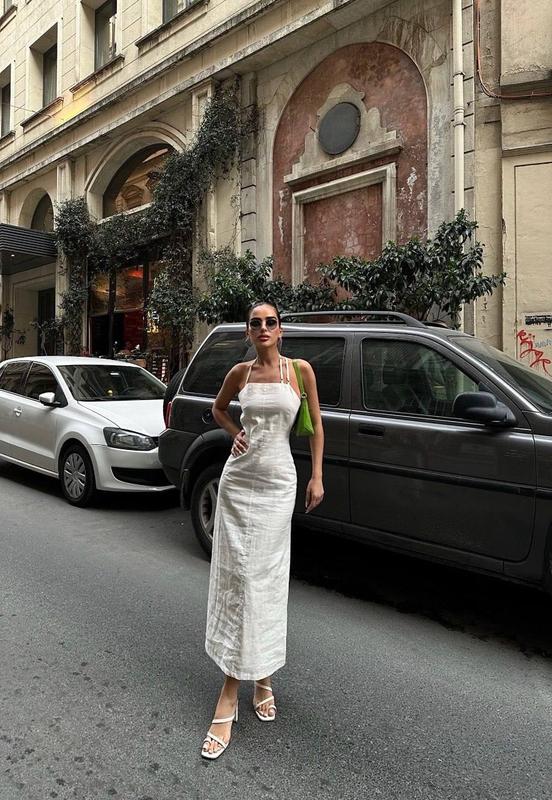 Легка літня довга сукня з льону ☺️ стильна сукня по фігурі з льону 💕