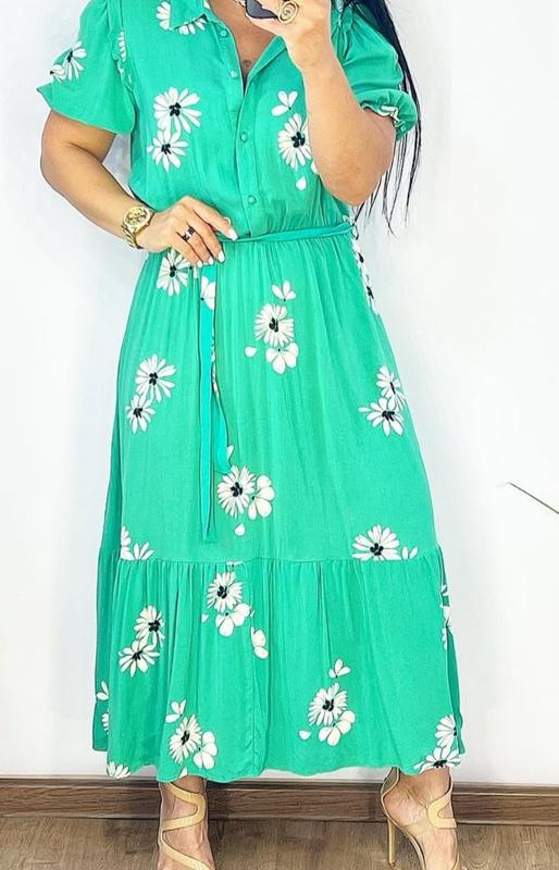 женское летнее платье из вискозы, цвета тифани по замерам: в груди 110 см, талия резинка, длина 128 см, есть поясок