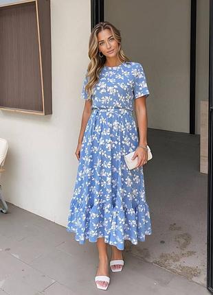 3293 ім Тканина: софт Розміри: 42-44,46-48,50-52 Сезон: весна/літо Ціна: 1790 грн Жіноча сукня міді з квітковим принтом Модель виконана в елегантному стилі: закритий верх з круглим вирізом, короткі рукави та приталений силует з акцентом на талії. Спідниця з м’якими складками створює легкий об’єм і гарно струмує при ходьбі. Ідеальна для побачень, прогулянок, урочистих подій або щоденних образів. Доповнюється поясом у тон та гармонійно поєднується з босоніжками чи елегантними сумочками. Розміри 42–44 • Груди: 90 см • Рукав: 30 см • Довжина: 118 см • Талія: 60–70 см Розміри 46–48 • Груди: 98 см • Рукав: 31 см • Довжина: 119 см • Талія: 66–76 см Розміри 50–52 • Груди: 106 см • Рукав: 32 см • Довжина: 120 см • Талія: 72–82 см