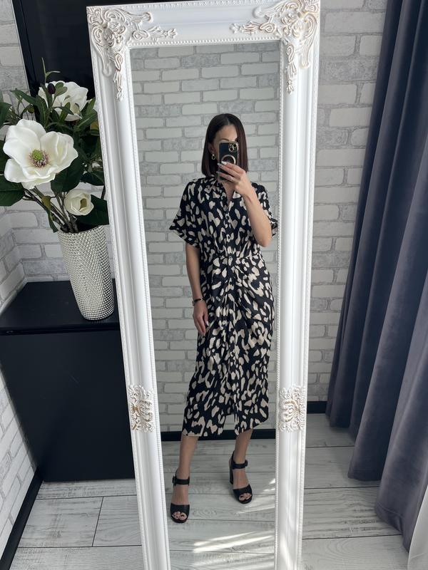 Продам сукню у принт фірми Shein, розмір вказан L але йде на М, ствн відмінний Заміри: Довжина 119см Рукав до горловини 32,5см Підпахвами 48,5см У талії 39см У бедрах 51см