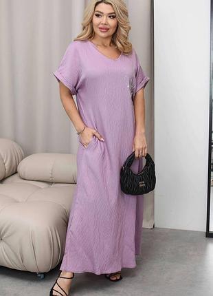 💛💙Сукня💛💙 Арт:85505,85506,85507 ✅ матеріал:льон жатка ✅ колір:чорний,графіт,ліловий ✅ Розміри:50-52,54-56,58-60 Заміри готового виробу розмір 50-52: ОГ - 114 см; ОС - 118 см; Довжина - 133 см; Довжина рукава від горловини - 31 см; Заміри готового виробу розмір 54-56: ОГ - 122 см; ОС - 126 см; Довжина - 133 см; Довжина рукава від горловини - 31 см; Заміри готового виробу розмір 58-60: ОГ - 130 см; ОС - 134 см; Довжина - 133 см; Довжина рукава від горловини - 31 см;