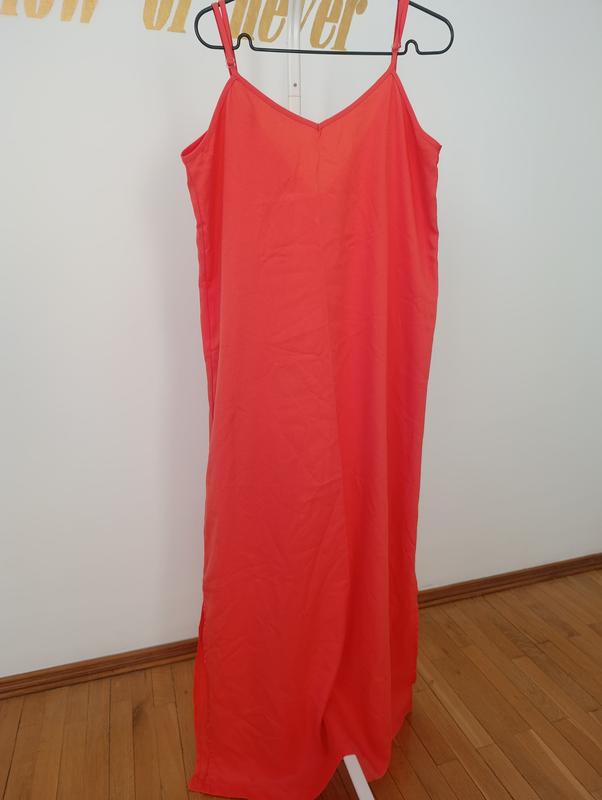 Довга сукня з розрізами по боках, легка, не прозора. Довжина мін 142, можна збільшити за рахунок бретелей, ОГ 100. Стан нової речі.