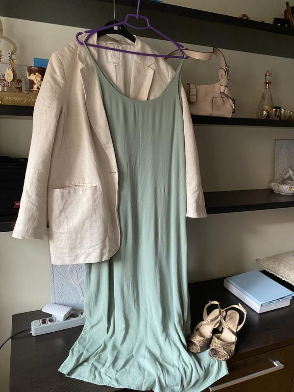 Довга то повнісю натуральна сукня на бретелях, така актуальна в теперішній сезон, підклад з віскози та верх також, що не так часто трапляється, вона на М та на Л, пояма але не стискує рухів, ( примітка- підклад до підлрги також та цільний- можна зробити так як ви хочете, та отримати ще доповнення з підуладу в вигляді новоі речі- була б тільки гарна шивкиня), це так, тому що в один шар сукня не просвічує. На Пог-до 55, Пос-до 60 буде добре, довжина-1.30, детально заптуйте, фото відтінку на перших трех відповідає( сумочка зі шкіри також у продажі, гарного вам шопінгу❣️