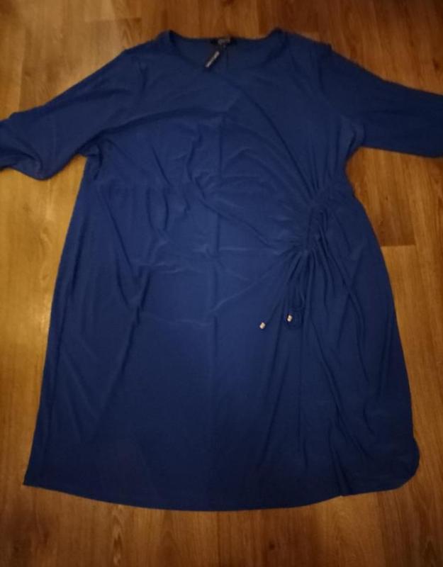шикарное платье новое на 60-64 рр ткань масло мягкое и приятное к телу , пошив отличный с затяжкой сбоку складки делает прячет животик и бока . длина 109 см , пог 76 см , пот 70см , поб 82см . цвет в жизни. электрик.
