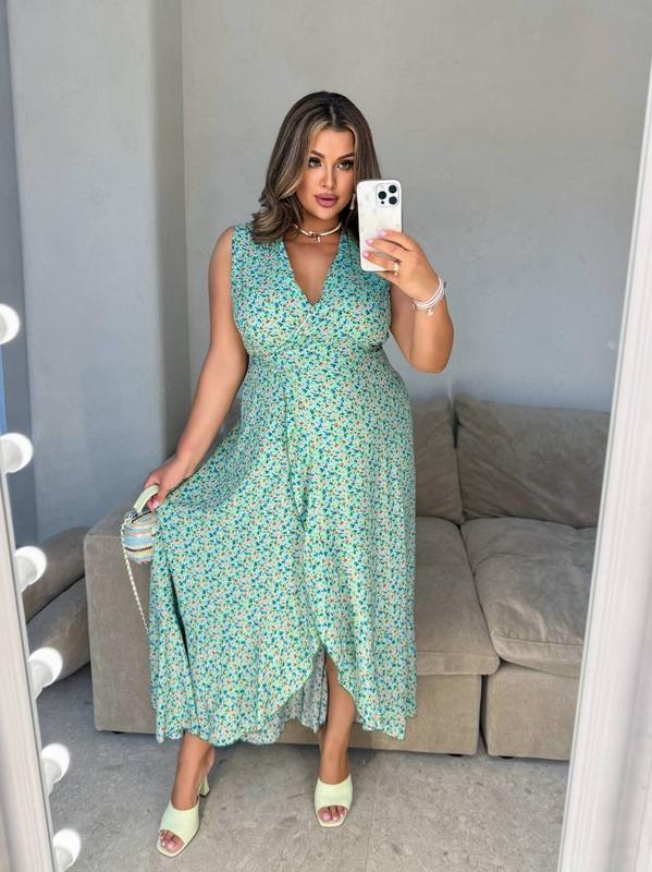 Жіноча легка довга сукня на запах в квітковий принт | 0073