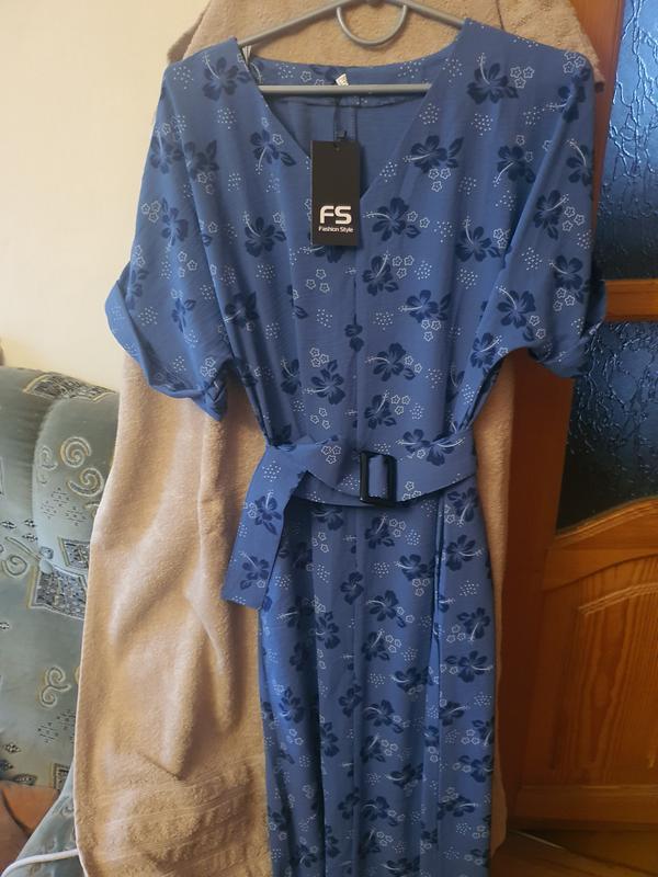 летнее платье прямого кроя с пояском, может носиться как прямою, так и подчеркивая талию, с карманами в швах боковых, как плотный крепдешин ткань, приятно серо- синего цвета,129см длиной, припушение рукав,в груди 56см Нова, не секонд