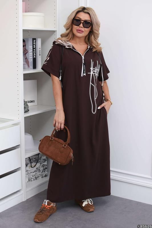 ‼️ОТПРАВЛЕНИЕ ВПРОДОВЖ 2-5 РАБОЧЫХ ДНЕВ!!️ Платье спортшик Размеры : 46-48, 50-52, 54-56, 58-60 Цвета: черный, электрик, малина, шоколад, трава, лайм Тканина : софт ( принт зебра) Платье спортивного стиля, интересный и удачный крой, подойдет под классический или спортивный стиль обуви. Платье свободного кроя,идеально сидит, удачно скрывает лишние объемы, на груди накат с камушками, белая молния с черно - белым карабином, глубокий капюшон на черно-белом канате, рукав на манжете до локтя, по бокам карманы, по низу платья разрезы. Модель 1059vl