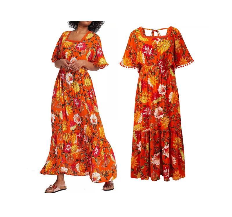 Яркое женское платье длинное платье оранжевое из вискозы платье натуральное летнее в цветы
