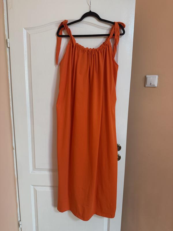 Елегантна сукня , дуже гарний колір. Розкльошена модель виготовлена із сатинтвоі .тканини - Розкльошений фасон, з кишенями - на завʼязках - Модель без рукавів. - Без застібок - ідеально для вагітних - довжина 125 см, ширина пройма 60 см( і більше)