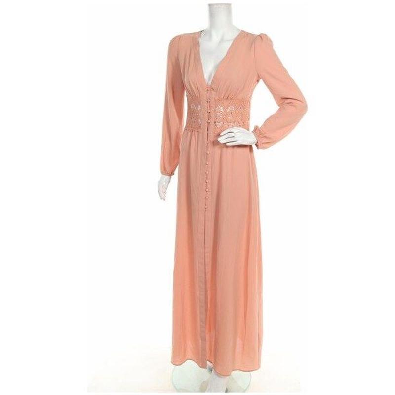 Длинное платье с пуговицами с кружевом в кружке на талии длинный рукав/ Boohoo. Цвет бежево-коралловый (+/- пудра). Оттенок зависит от освещения. Размер указан EUR (FR) 38/EUR(DE) 36/UK10. Может быть m, L. Линия груди 45-46 см (расширяется до 48-50 см. Линия под грудью 38-40 см Линия талии 38-40 см. Плечи 38 см. Длина рукава 62 см. Длина от плеча 150 см. Спереди сверху V вырез, внизу разрез. Ткань легкая,жатка, немного просвечивает.