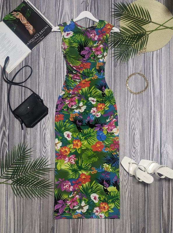 Яркое длинное облегающее платье в цветочный принт и листья rachael &chloe #4326