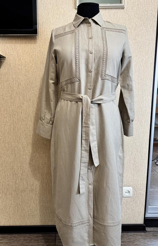 Неймовірна сукня, плаття сукня-сорочка з поясом з льону та бавовни marks & spencer, нова Розмір 12 Колір беж ( natural) Є ще в білому кольорі Заміри розмір 12 Довжина спереду від горловини 116 довжина від плеча 124 рукав з манжетом 59 , 5 манжет 8 , 5 плечі 41 пог 53 ПО талія 53 ПОБ 60 ПО низ 63