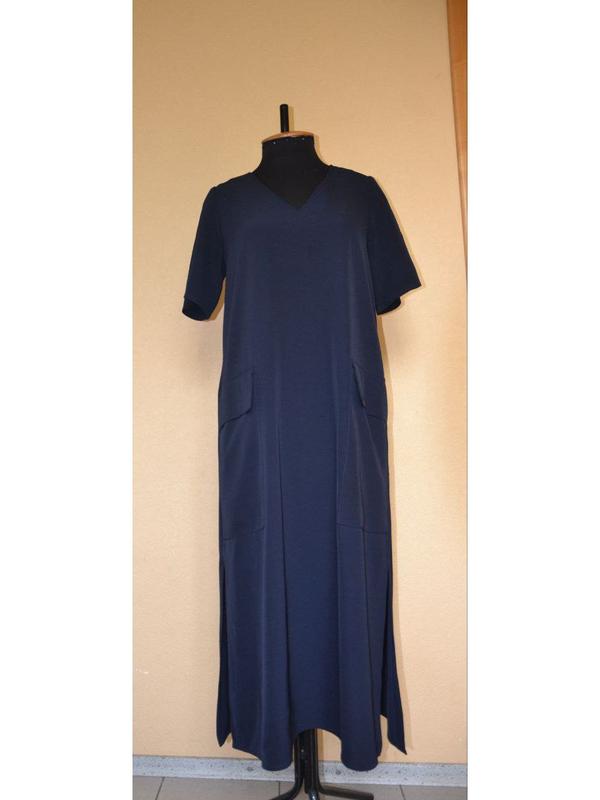 Длинное платье темно-синего цвета от британского бренда John Lewis. Имеет V-образный вырез, свободный ровный крой, большие накладные карманы и разрезы по бокам. В комплекте идёт широкий пояс. Подойдёт на размер L-XL. Если носить с поясом, подойдёт и на размер М. Состояние идеальное. ПОГ 51 ПОТ 53 ПОБ 57 Длина 123 Длина рукава 27 Высота разрезов 38