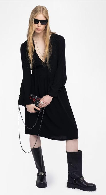 Платье средней длины - Глубокий вырез - Застежка на шнуровке - Длинные рукава - Жидкий разрез