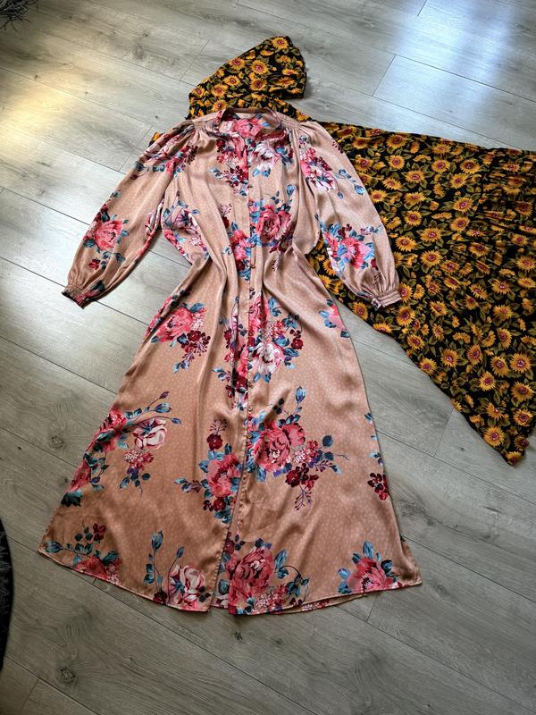 Сукня плаття під шовк Пог 60 Пот 60 Поб 62 Довжина 140 Довжина рукава 64 Довжина розпірок 40 На ґудзиках Легесенька тканина тонесенька Не мнеться