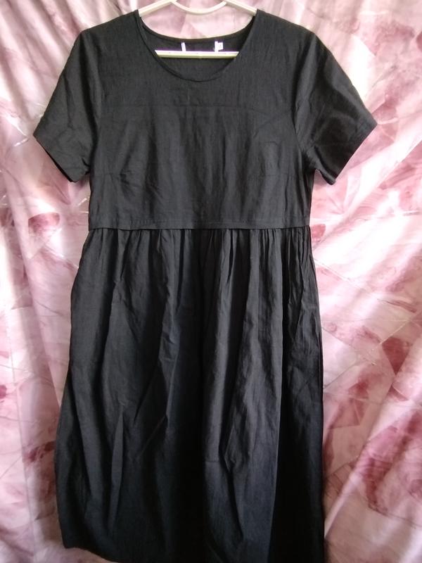 БАЗОВАЯ КОТОНОВАЯ ЧЕРНАЯ СУКНЯ Есть КАРМАННЫЕ ПОГ 49 ПОТ 48 ПОС 81 Д 125 К ТАЛИИ 38