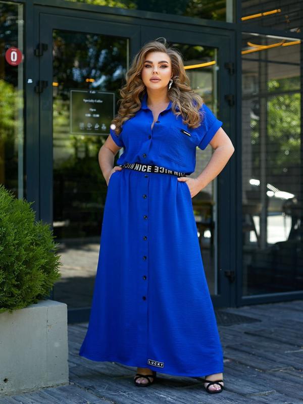 Модель 227oks Платье летнее подарит вам легкость и комфорт. В ней вы будете невероятна Тканина :жатка Размеры 50-52;54-56;58-60;62-64 66-68 только в синем 50-52 Объем груди 110см Объем талии 75/112см Объем бёдер 128см Длина лифа 46см Длина юбки 100см Длина рукава 28см Ширина рукава 44см 54-56 Объем груди 118см Объем талии 80/120см Объем бёдер 136см Длина лифа 48см Длина юбки 100см Длина рукава 28см Ширина рукава 46см 58-60 Объем груди 126см Объем талии 85/128см Объем бёдер 144см Длина лифа 50см Длина юбки 100см Длина рукава 29см Ширина рукава 48см 62-64 Объем груди 134см Объем талии 90/136см Объем бёдер 152см Длина лифа 52см Длина юбки 100см Длина рукава 29см Ширина рукава 51см 66-68 Объем груди 140см Объем талии 95/142см Объем бёдер 158см Длина юбки 100см Длина рукава 29см Ширина рукава 52см