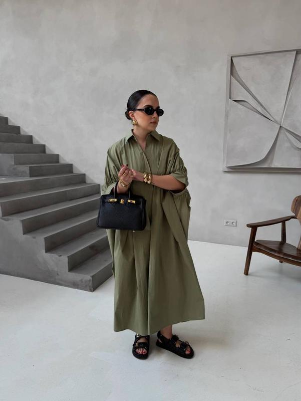 Арт.0505 Сукня Тканина: котон армані Розмір: 42-48, 50-54 Колір: оливка, беж, чорний Ціна 950 грн