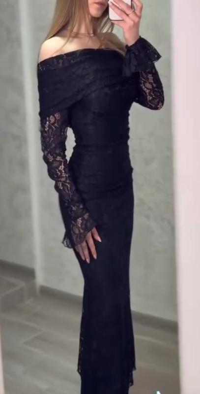 Очень красивое черная длинная кружевное платье Размер S-M Надевала только 1 раз, поэтому состояние идеальное 10/10 Если нужно, я могу сбросить дополнительные фото в частные сообщения