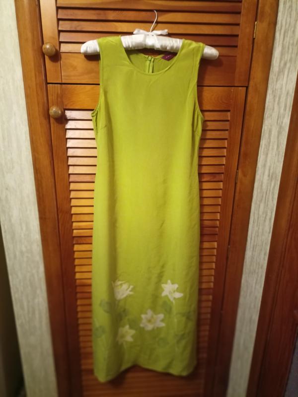 Платье длинный шелк 100%, длина 115, в груди 45,размер 8, eur 36,стан идеально