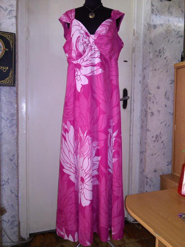 Яркое, красивое, длинное платье-сарафан, на тонкой, трикотажной подкладке, в цветочный принт, большого размера, Changes by together. Размер на бирке 16 (44), но ориентируйтесь по измерениям: ПОГ 50см тянется по сзади на резинке до 60 см, ПОТ -50/53 см, ПОС - 70/72 см, длина от низа бретелей 126 см + бретели 16,5 см. Фотографии не передают красоты и изысканности этой вещи. Ди.другие объявления - есть аналогичные жакеты, платья, блузки, а также 90% одежды больших размеров. Пожалуйста, запрашивайте, создайте дополнительные фото и замеры, возврат - нет, объемы - платные. Подписывайтесь на страницу - каждый день обновления одеждой больших размеров и не только.... Покупая несколько товаров -Вы экономите на пересилении, лоты комбинируются в одну посылку. Перед покупкой-прохание: ознакомиться с рубрикой "ПРО МЕНЕ" Состав: полиэстр-типа шифона Доставка: Перешлю в другие города - за Ваш счет - при полной оплатке на карточку
