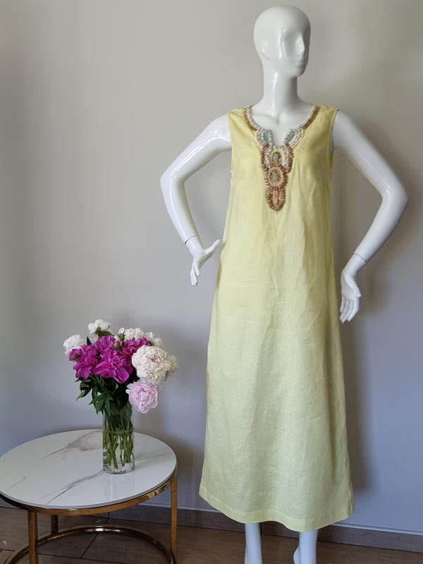Невероятное льняное платье украшенное камнями с разрезами 🏷️ Состояние идеал Рр ▪️ L ✅ Отправки Укр и Новой почтами 📦