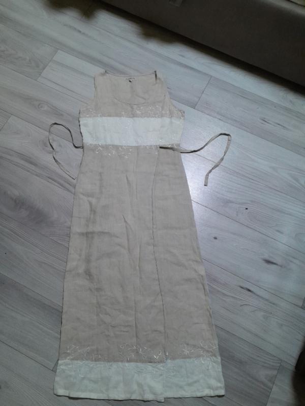 Очень классное льняное платье с нежной вышивкой. По комди 45 По поясу 41 Длина 131