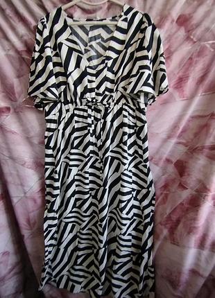 НЕЙМИРОВЕРНАЯ СУКНЯ В ЧЕРНО -БЕЛЫЙ ПРИНТ ПОГ 62 ПОС 66 Д 124 К ТАЛИИ 37