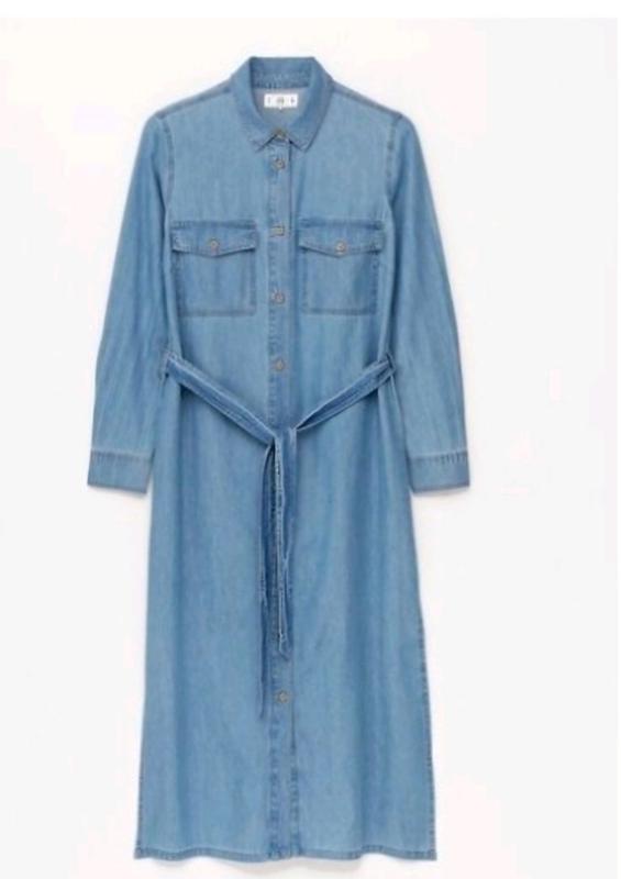 Джинсовое платье длинное с разрезами и пояском