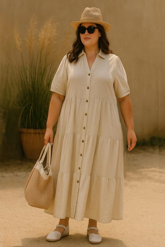 Стильное льняное платье Размер стоит 16. Фасон свободный. По замерам идеально на 2XL -3XL Пог 61-63 см Поб 77см Длина 134 см Плечи 43 см Рукав 29 см 52% лен 48%вискоза