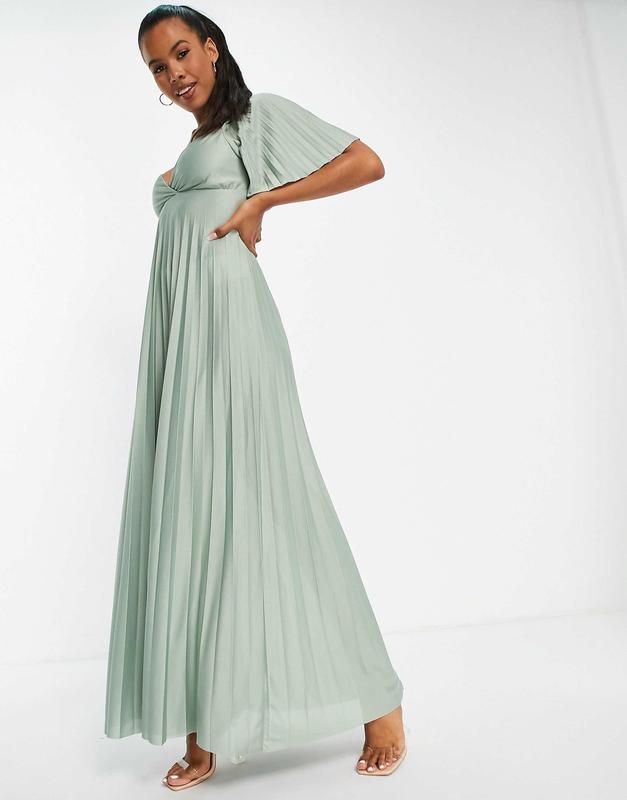 Плісована максі-сукня з підкрученою спинкою та рукавами-кільцями зеленого кольору Стан ідеальний; розмір хс Заміри: ог 40, довжина 144 От/об вільно, лягає по фігурі