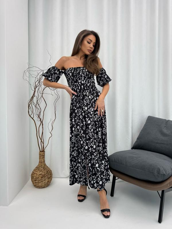 🖤💕🖤ТОП ПРОДАЖ🖤💕🖤У НАЯВНОСТІ 🖤💕🖤 🔥🔥🔥Плаття-максі 🔥🔥🔥 Арт. SV 616а Тканина: євро-софт Колір: чорно-білий Розміри: S, M, L, XL Ціна: 560 грн. Опис: Сукня-максі з жаткою на грудях, відкритими плечима та рукавами-ліхтариками. Виріб приталеного крою з розкльошеною довгою спідницею, декорованою двома розрізами. ( заміри вказані на параметри)