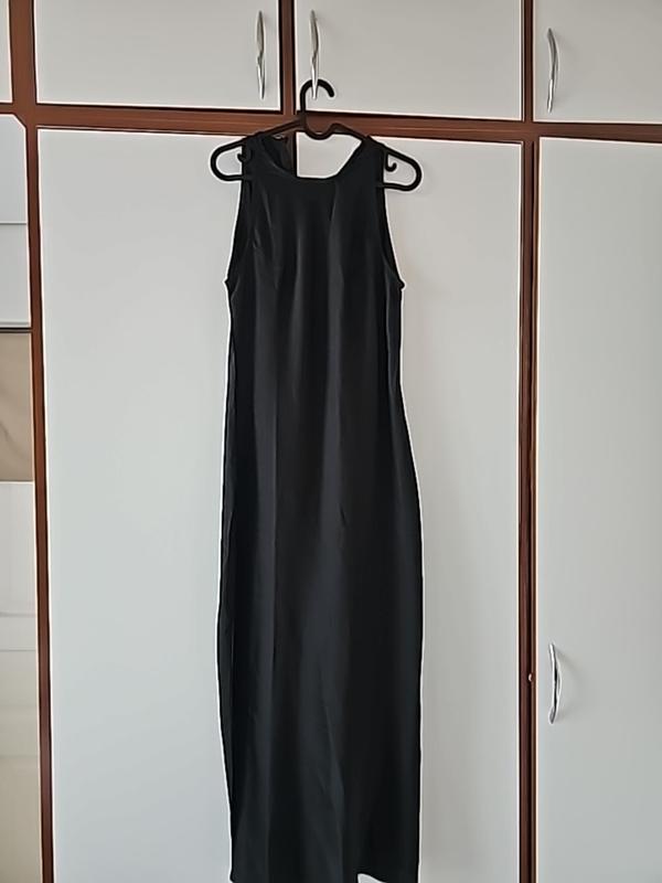 черное длинное платье атласах с разрезом сбоку новеньком М размер