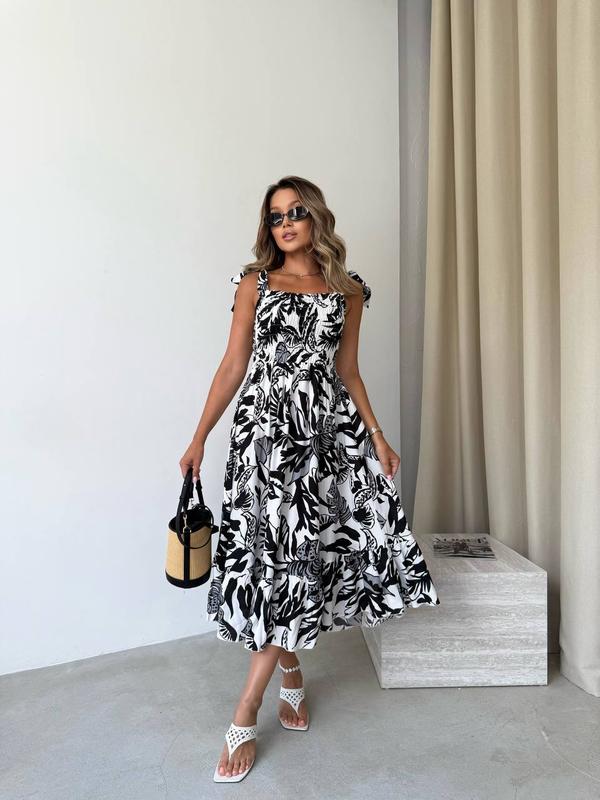 Новинка🥰 Мод 367 Сарафан миди с тропическим принтом Этот стильный сарафан - идеальный вариант для лета. Тропический принт выглядит дорого и актуально, подходит как для городских прогулок, так и для отдыха. 🔸 Фасон: длина миди, расклешенная юбка с воланами создает легкий и женственный силуэт. 🔸 Верх: квадратный вырез и широкие бретели на завязках – удобно, стильно, регулируется по длине. 🔸 Талия: приталенный верх подчеркивает фигуру и добавляет силуэту изящества. 🔸 Ткань: легкая, не парка, комфортная к телу - идеальна для жаркой погоды. 🔸 Стойкий принт: не выгорает на солнце и не теряет цвета после стирки. Ткань: штапель(натуральная ткань) Размеры: 42–44, 46-48, 50-52 Сезон: весна/лето
