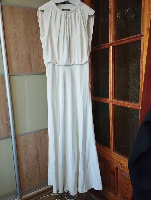 длинное платье, низ крой на косу, красиво садится на бедра, верх несколько с напуском. состояние хорошее, сядет на М и на не полную L