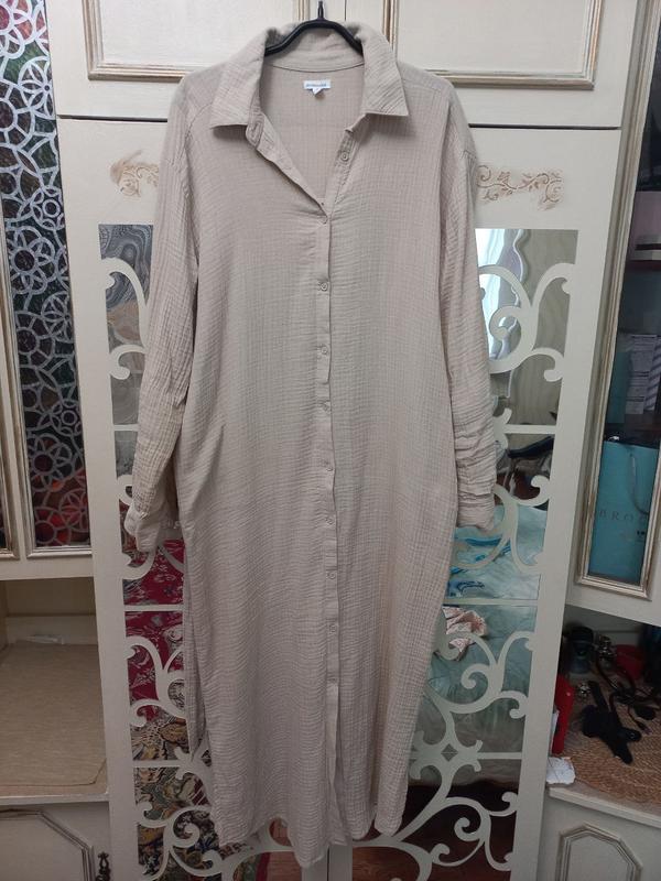Длинное платье-рубашка vertbaudet р.М состояние нового, коттон, цвет слоновой кости, длина 123, длина рукава 54, ширина плеч 45, ПОГ-51, ПОБ-54