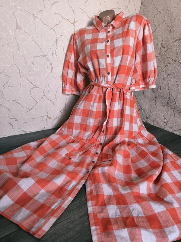 Хлопковое платье в клетку на пуговицах, под пояс. Длина 45+83 Полуобхват груди 60 ПО талии 53 НО стегон 68 Плечи 43 Рукав 35 Бицепс 27. Накладного платежа нет.Сайт подключил эту функцию без моей поддержки.