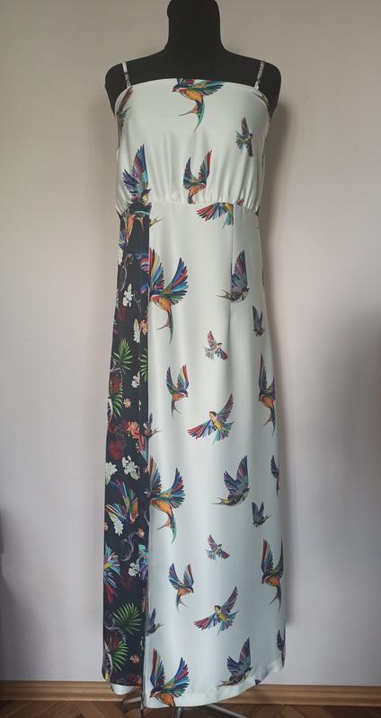 Красивое атласное платье с разрезом, сзади потайной замок, под руками резинка, лямки не регулируются ( немного подшиты) Длина по боковому шву 115 см. Нюанс: сзади нище колена затяжка - последние два фото