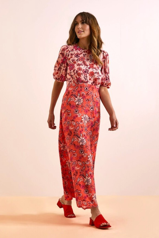 Брендовое вискозное платье макси "Tu Everbelle" с цветочным принтом. Размер uk18/eur46. С открытой спиной и розовым бантом-завязкой, рукава-фонарики. Замеры: -ПОГ - 53 см плюс складочки ткани на груди; -ПОТ - 49 см ; -ПОБ - 68 см; -длина рукава - 36 см; -длина платья - 138 см. Без дефектов. В идеальном состоянии! *Рост манекена, на котором сделано фото - 185см. *Рост модели на каталожном фото - 170 см.