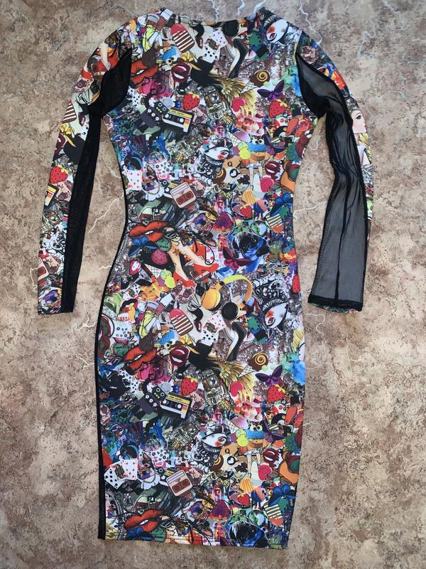 Сукня у мультяшний принт зі вставками сіточки по боках та на рукавах. Дуже цікава та стильна сукня 💕 Розмір пише 10 Заміри питайте в особисті 💌