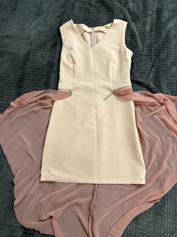 Плаття в хорошому стані. Розмір С-М 38, колір рожево-персиковий (плаття блідіше, шлейф насичений), на фото зблизька передає колір. Дивіться мої інші варіанти або пишіть скину варіанти в розмірі С-М.
