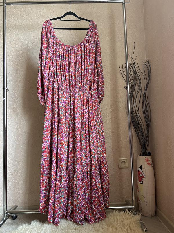 Marks&spenser 24 р можна носити приспущеною Пог 65-75 Пот 50-70 По стег 80 Рук з плечем 60 Топ 45 Довж 135 Довж спідниці 96 Віскоза натур Ц680🏷️