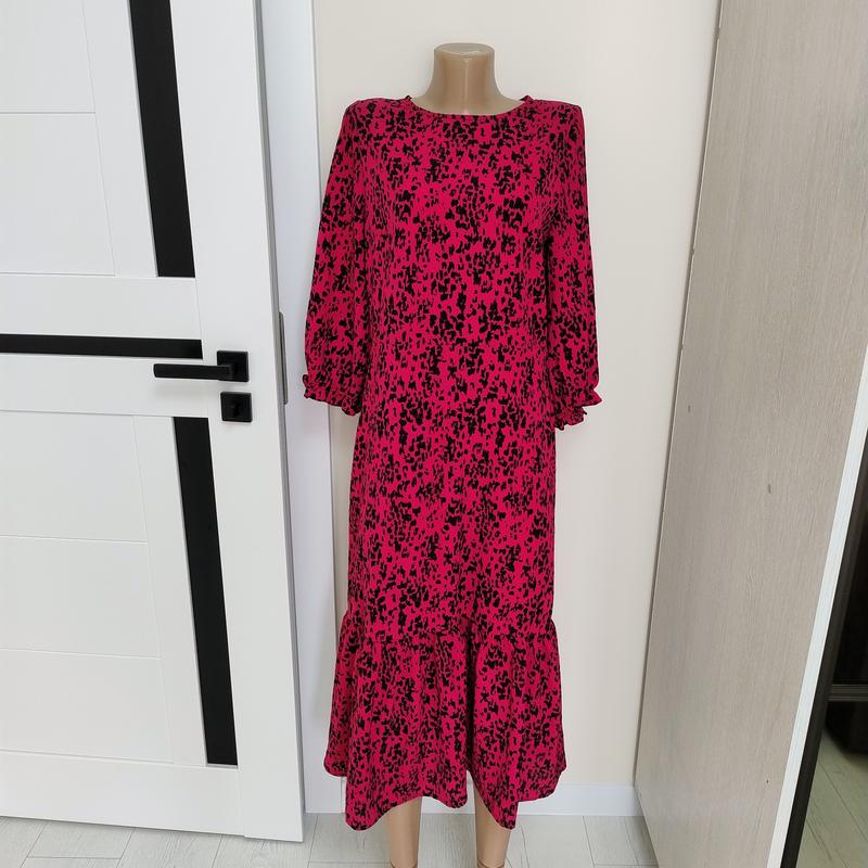 Полиэстер Размер М от подмышки до подмышки 49 полу охват талии 41 полуобхват бедер 55 длина 122 длина рукава от плеча 49