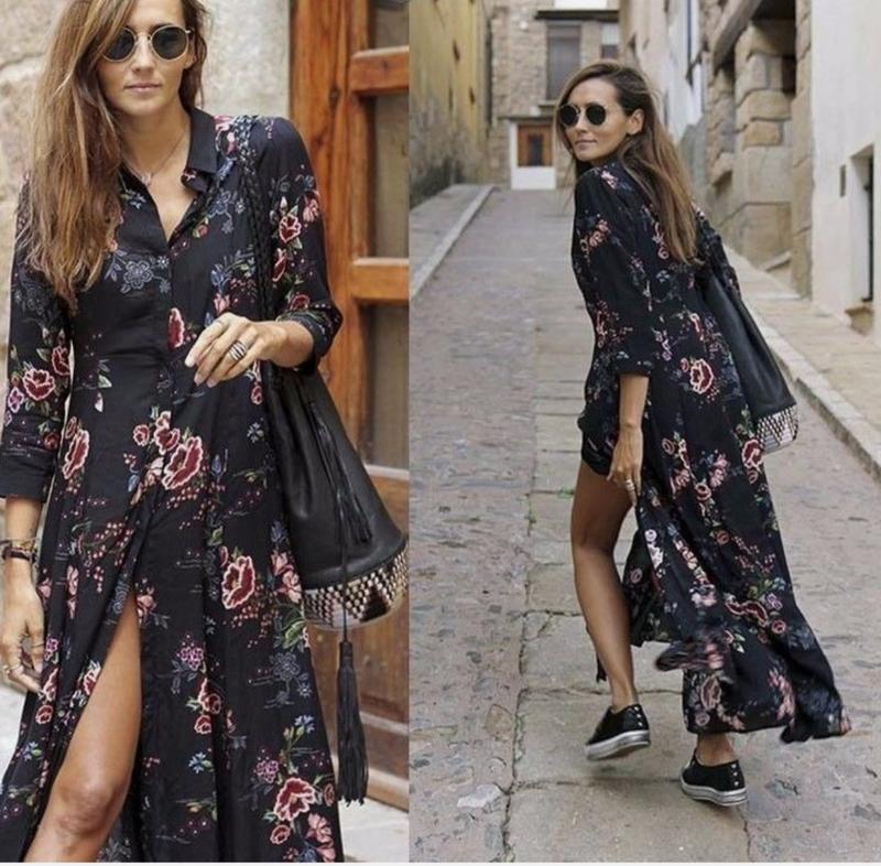 Довга віскозна сукня в квітковий принт Рукав3/4 Застібається на гудзики по всій довжині Довжина 136 Рукав 48 Пог47 Пот39