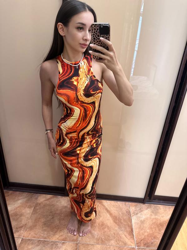 Довга яскрава сукня з вирізом на спині Розмір С , на М теж підійде Стан хороший
