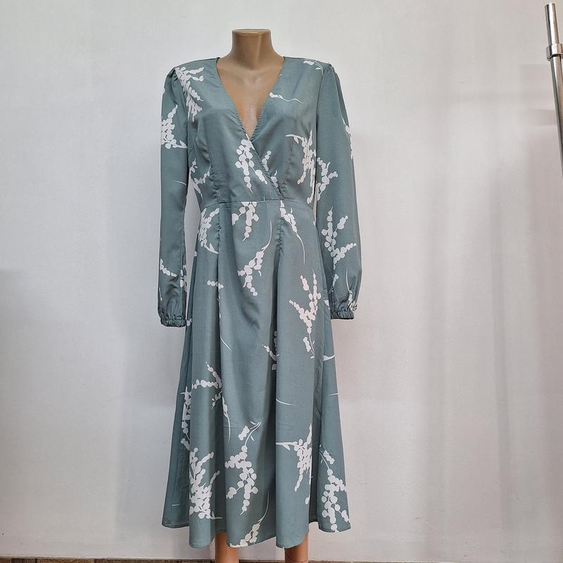 платье женское.сзади на замочке.оливкового цвета размер Л ог 96+ от80-86 об 116-125 довж 119