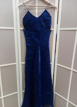 Сарафан длинный праздничный с подкладом Ткань перламутровая синяя. Крой по косой. Об. Гр. 40см., Об.тал 36cм.,. Об.бед. 50см. длина 164см
