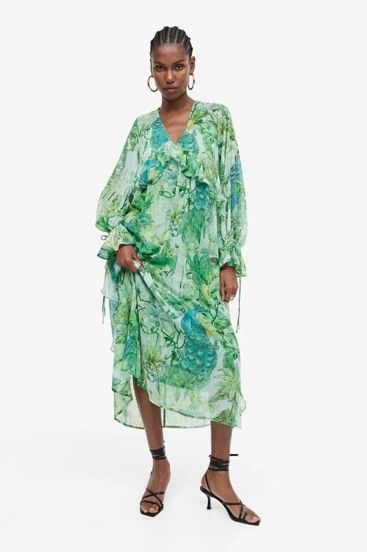 Зелена сукня HM, Нова з біркою, Фото 3 - Нюанс - відійшла строчка окантовки, це ледве помітно, або можна підшити. Груди до 115 Стегна до 135 Підкладка тягнеться, груди до 115 Підкладка Стегна до 120 Довжина сукні 125 Рукав 68 Мої параметри : 90-70-100, зріст 160 см