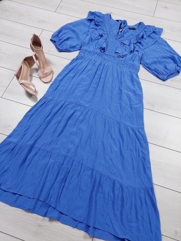 Красивое платье макси M&S 100%вискоза р.14UK,L,стан идеальное. Невероятно красивый цвет сине-фиолетовый,камера нажаль не передает. Довж.129/134см Пог 46,5см Пот 40см в спокойном состоянии, по спинке прорезано Поб 56см Рукав укороченный, от горловины 48см